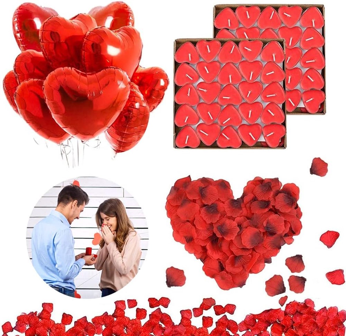 Wedding Decoratie Set – Romantische Decoratie Set 1000 Stukken Rode Rozenblaadjes – Liefde Folie Ballonnen – 15 Rode Ballonnen – 2 Folie Ballonnen – I Love You Banner Set – voor Dating – Feest – Verloving