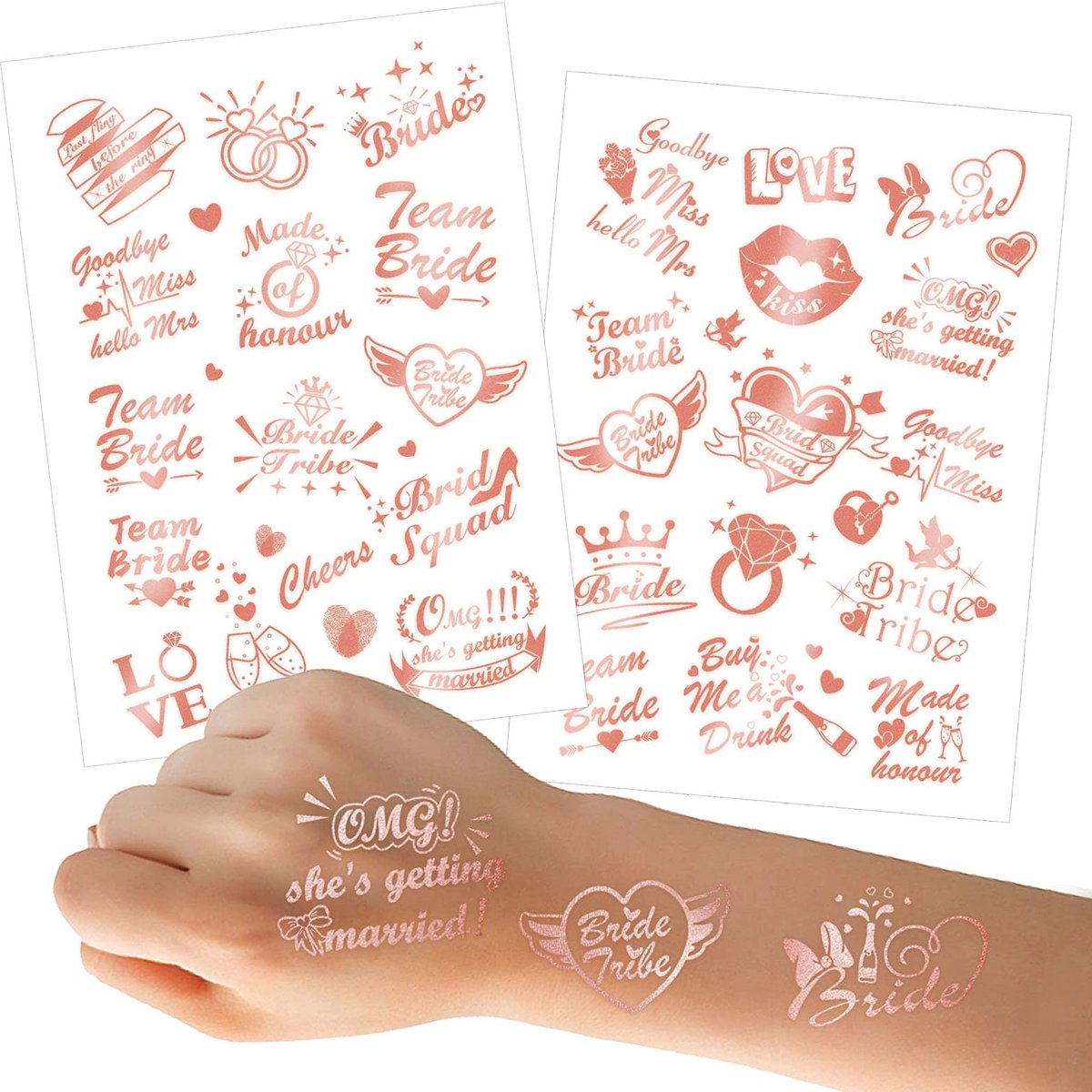 4 vellen roségouden tatoeages, vrijgezellenfeest, gadget, vrijgezellenfeest, vrienden, bruid, tijdelijke tatoeages, teambruid, tatoeages voor vrijgezellenfeest, vrijgezellenfeest, nacht
