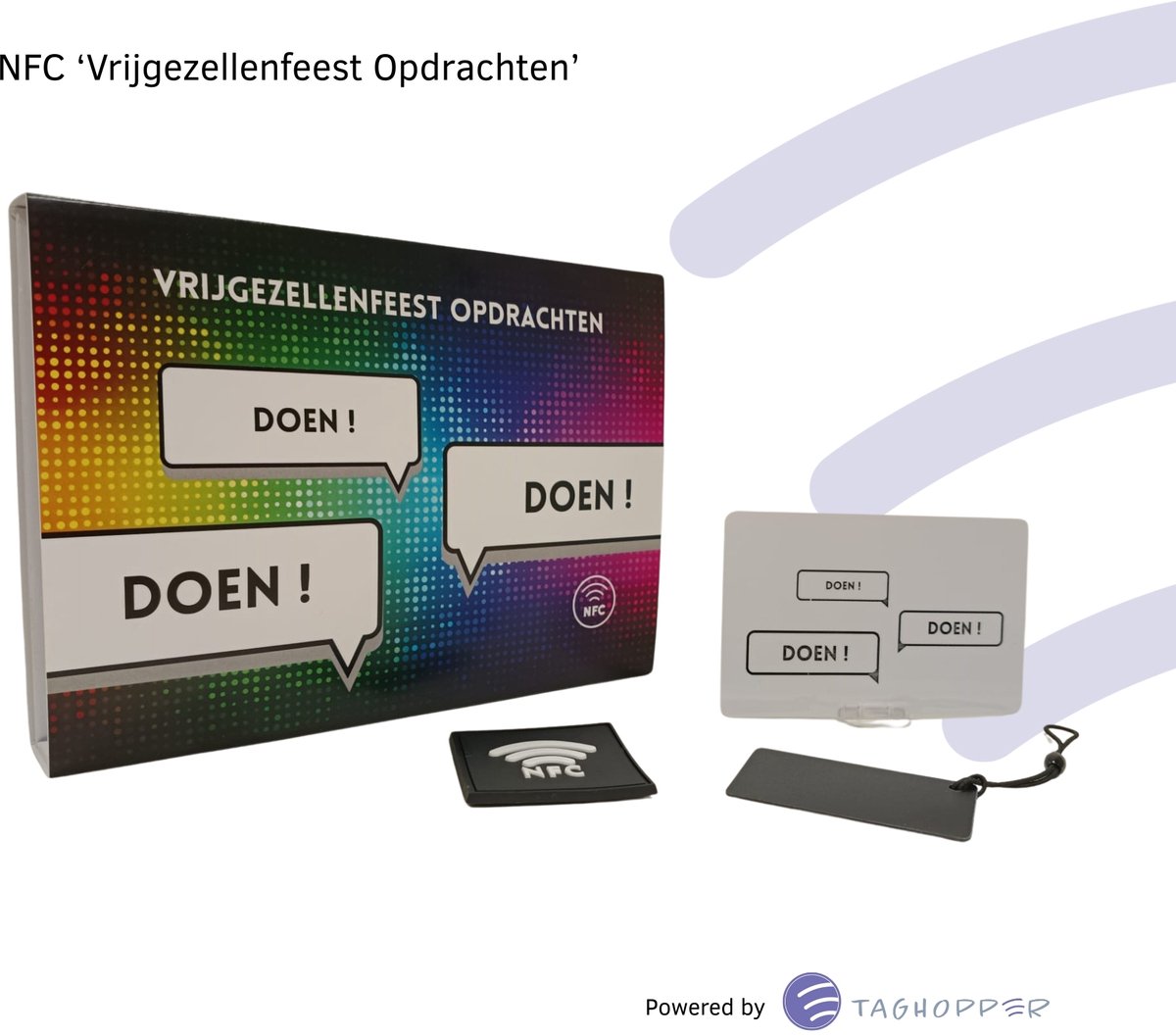 Taghopper™ NFC Vrijgezellenfeest Opdrachten – Fopartikelen – Vrijgezellenfeest Man – Vrijgezellenfeest Vrouw – Quiz+Kaartspel – NFC
