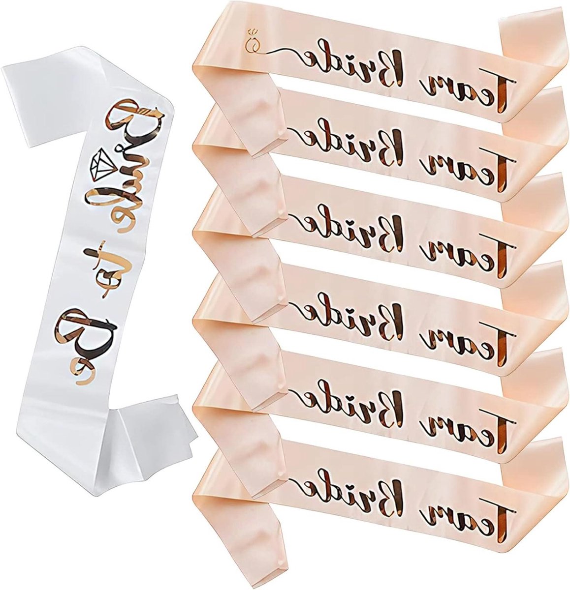 Maak jouw vrijgezellenfeest onvergetelijk met deze prachtige sjerpenset! Ideaal voor aanstaande bruiden en hun bruidsmeisjes, deze set van satijnen sjerpen voegt een vleugje glamour toe aan elke viering.