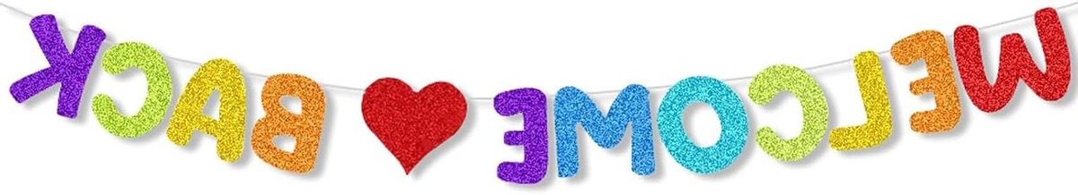 Welkom Terug Decoratie Slinger Creëer een Warm Welkom met de Welkom Terug Decoratie Slinger! Voordelen van het product: Gemaakt van hoogwaardig glitterkarton dat prachtig glinstert en duurzaam is