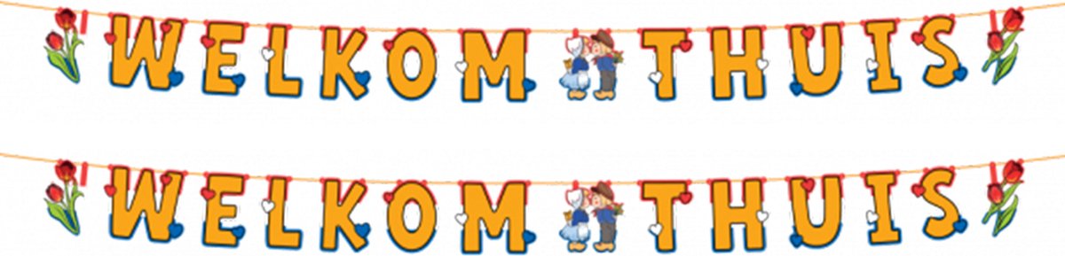 Partyxplosion – 2x – Welkom Thuis letterslinger – Rood/Wit/Blauw – 3 m – papier