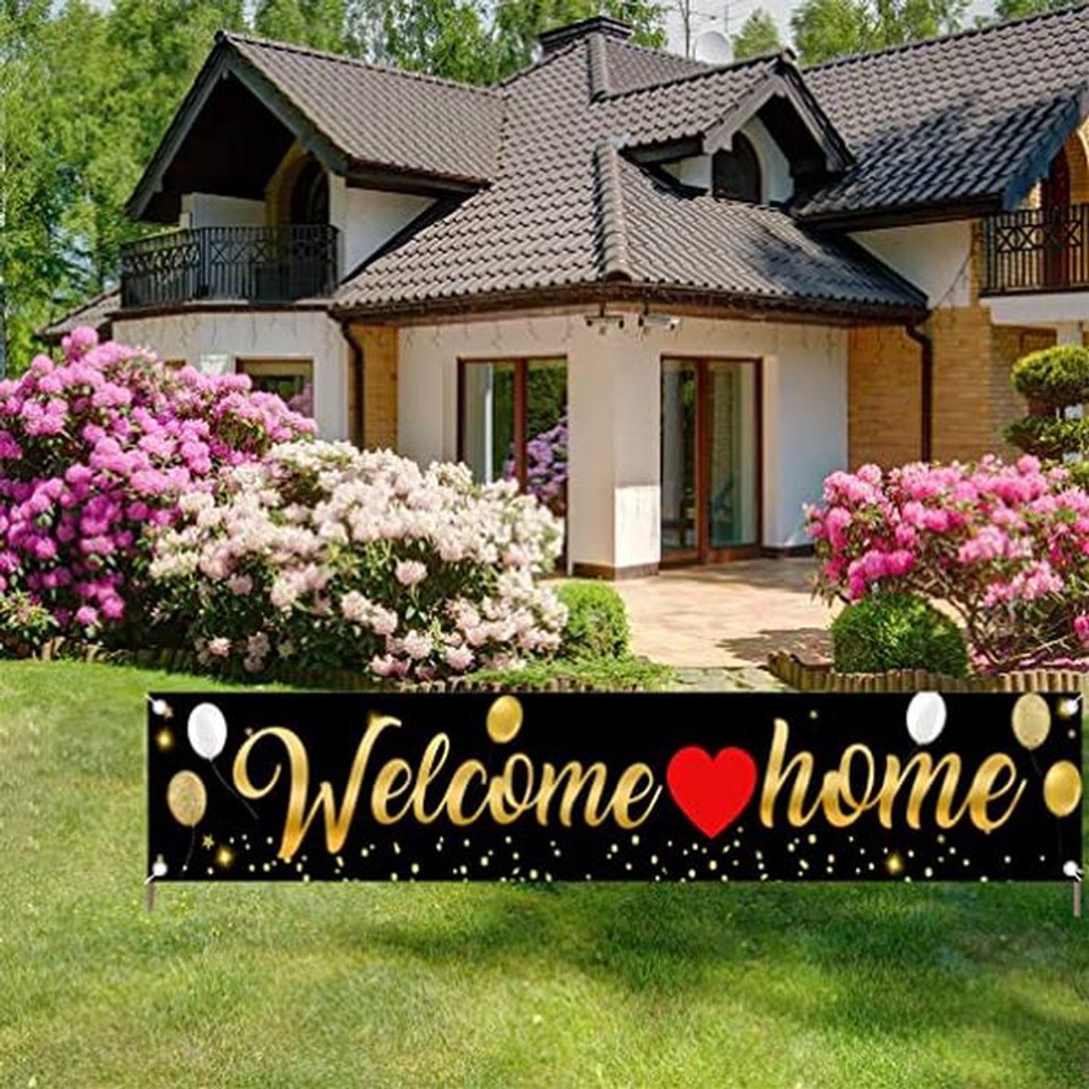 Welkom Thuis Banner Decoratie – Zwart Gouden Welkomst Teken voor Tuin en Feest