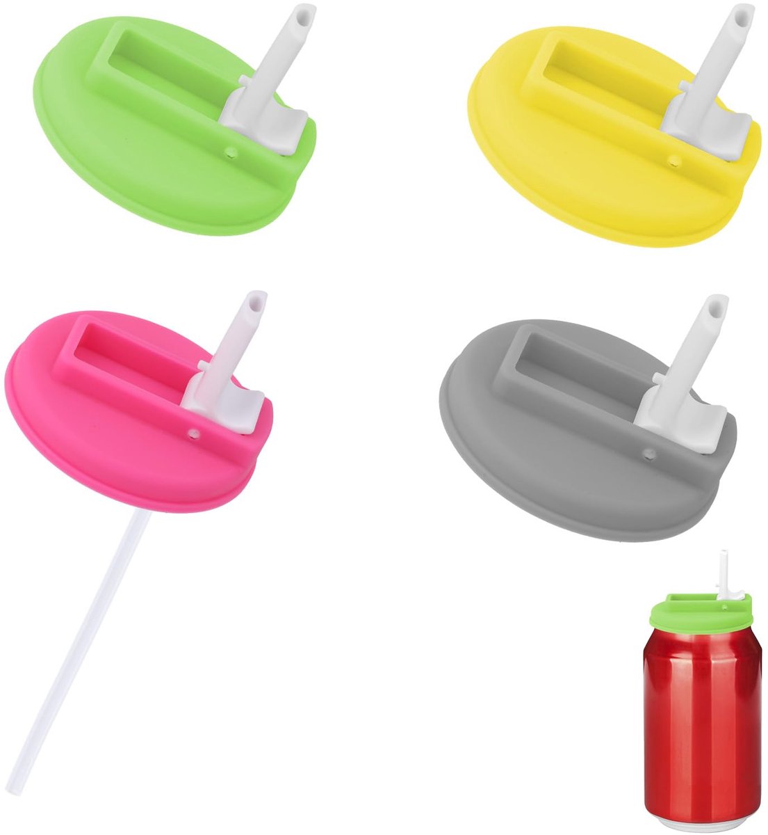 4 stuks deksels blikjes frisdrank met rietjes, siliconen plastic deksels frisdrank herbruikbare keukengereedschappen geschikt voor standaard blikjes biersap (groen, grijs, rozerood, geel)