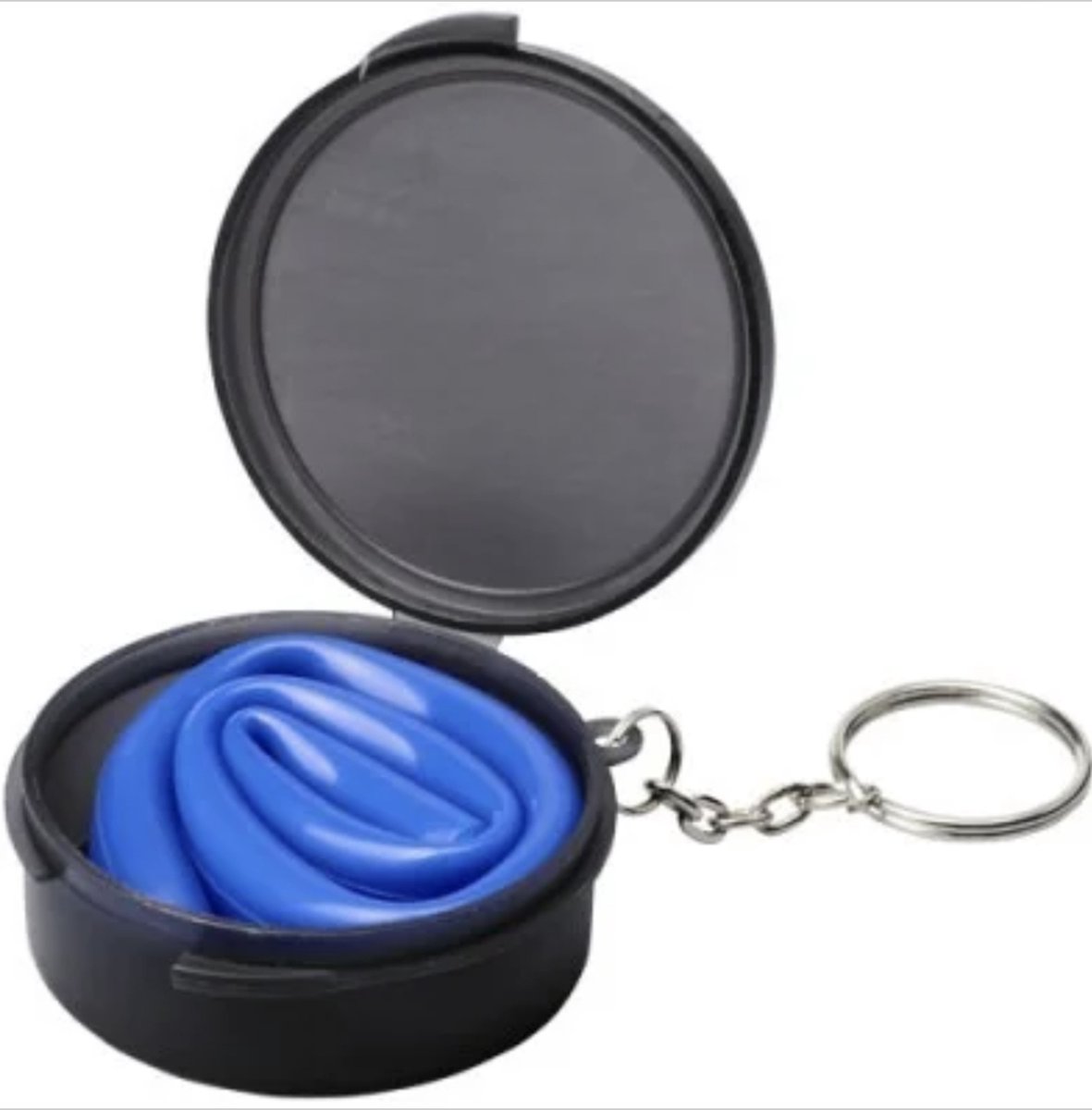 Bijoux by Ive – Sleutelhanger duurzaam herbruikbaar blauw siliconen rietje in zwart plastic doosje
