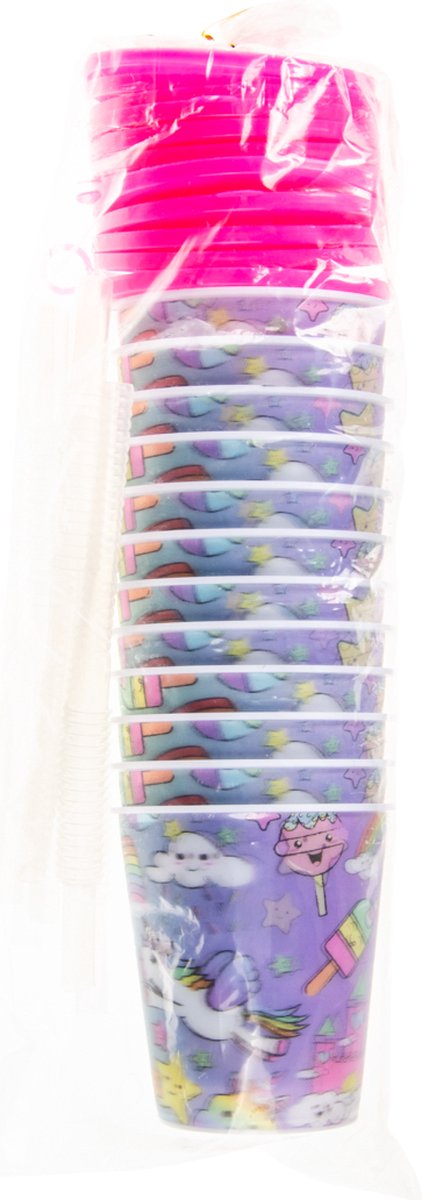 Drinkbekers Eenhoorn 12 STUKS – Inclusief Rietje & Deksel – Unicorn – Uitdeel Bekers – Uitdeelcadeautjes – Drinkbeker voor Kinderen – 3D effect