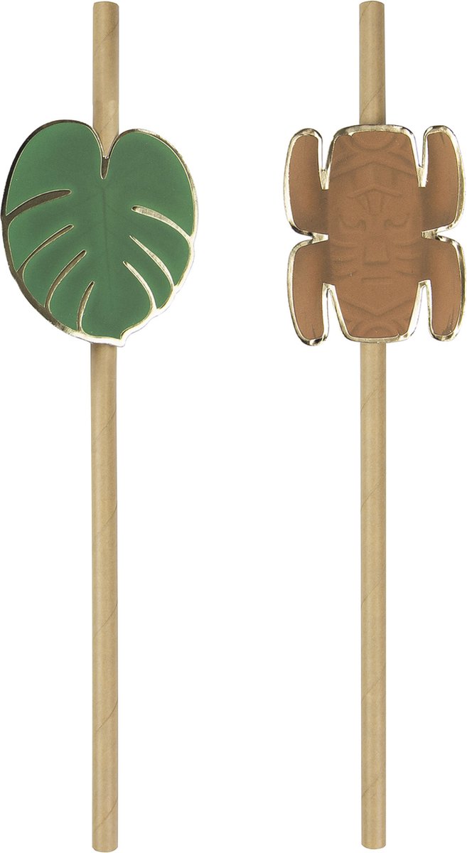 Deze totemrietjes worden verkocht in verpakkingen van 10 stuks. Ze zijn gemaakt van kraftpapier, zijn ongeveer 18 cm lang en bevatten 5 rietjes met een totem medaillon en 5 rietjes met een tropisch blad medaillon. Deze rietjes zal perfect zijn voor je verjaardag!