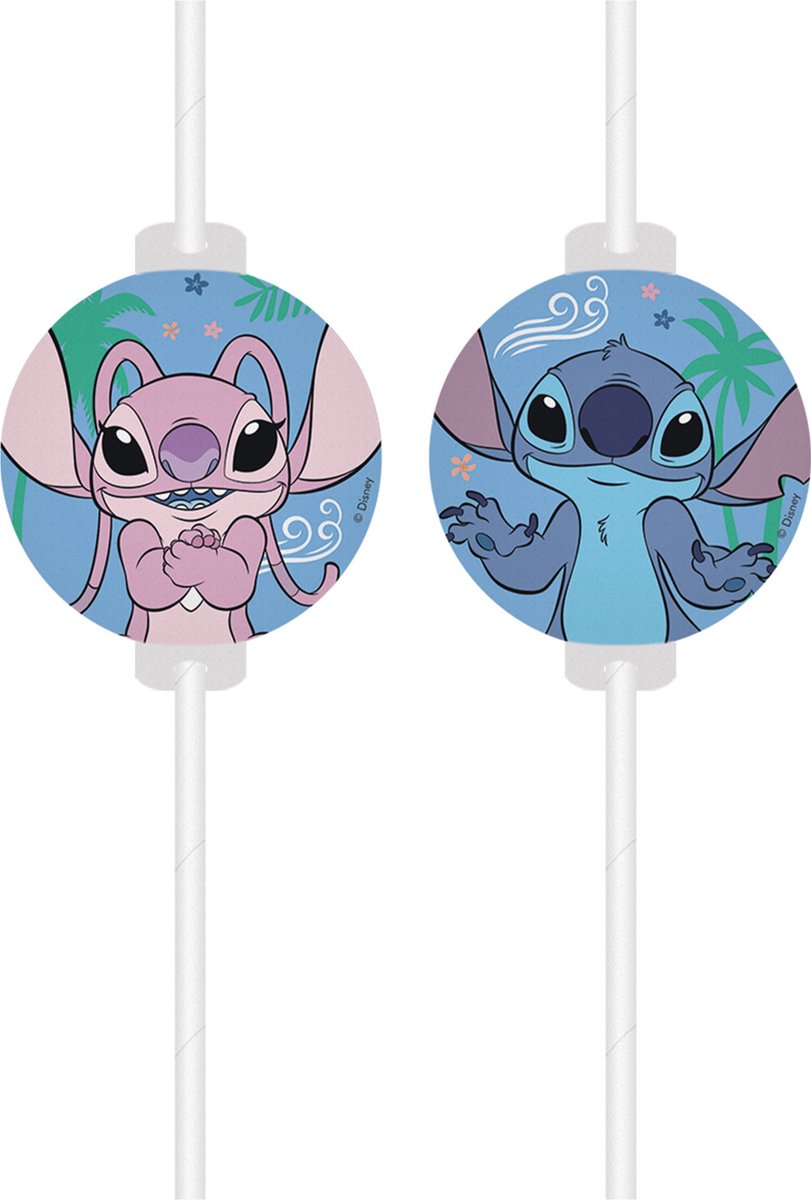 Procos Stitch rietjes – 4 stuks met papieren medaillon – 23 cm
