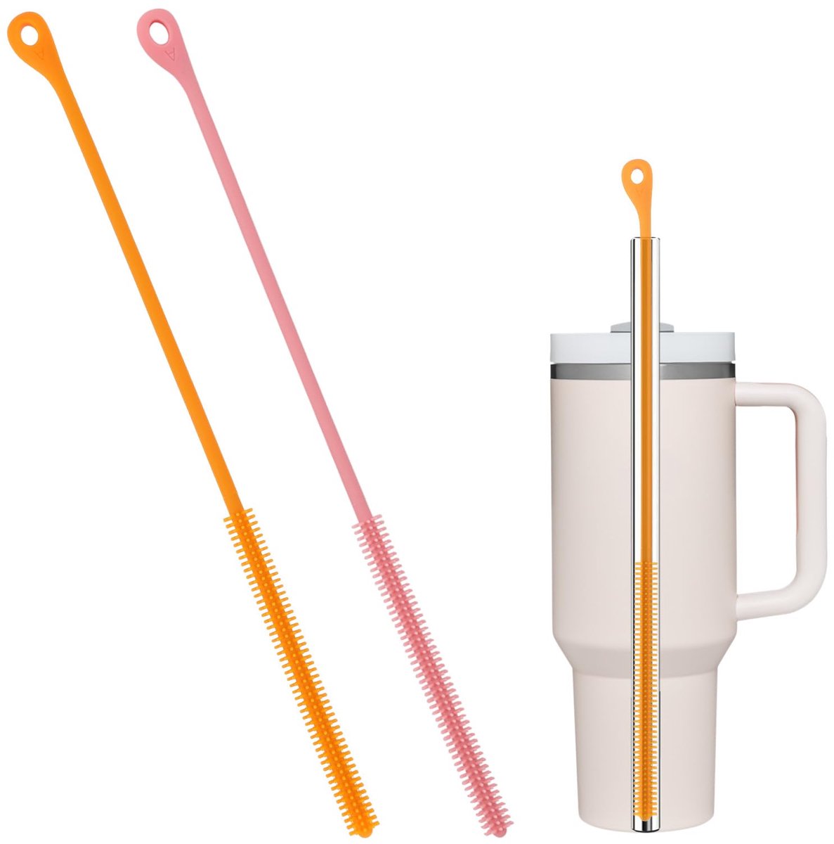 stuks siliconen rietjesreinigerborstel, 24 cm extra lange rietjesreiniger voor metaal, glas, plastic rietjes en buigzame pijpen (roze, oranje)