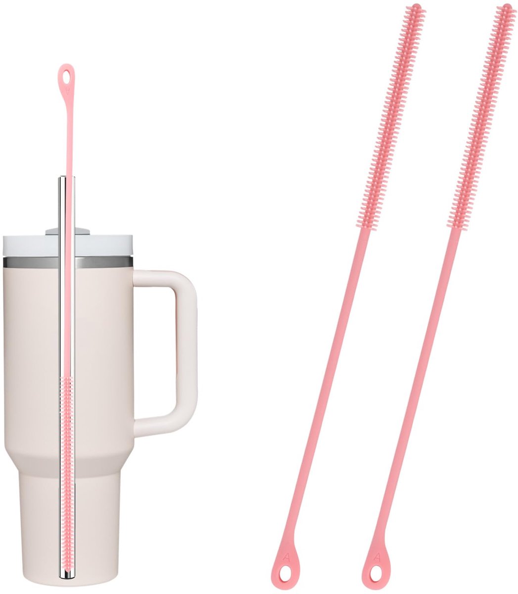 stuks siliconen rietjesreinigingsborstel, 24 cm extra lange herbruikbare borstel voor Stanley metalen glazen rietjes, buigzaam reinigingsgereedschap voor doppen, spleten, buizen en slangen (roze)