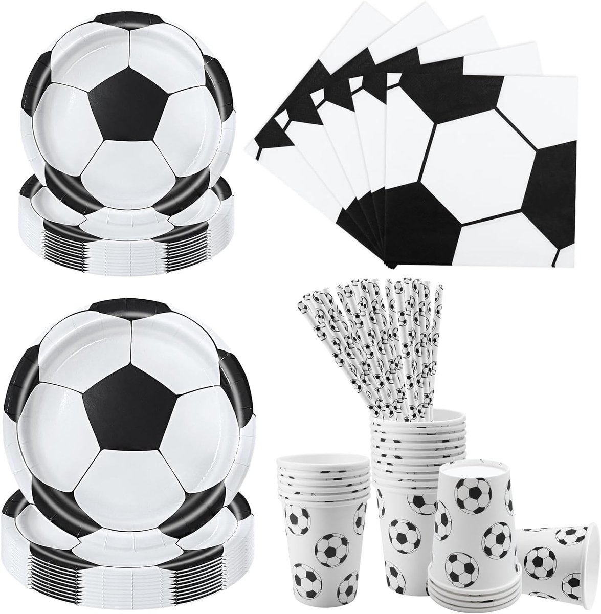 100 Pieces Football Party Tableware Set – Zwart en Wit Voetbal Feest Plateaus – Verjaardag voor 20 Gasten Tafeldecoratie – Kinderen’s Verjaardagsborden – Bekers – Servetten