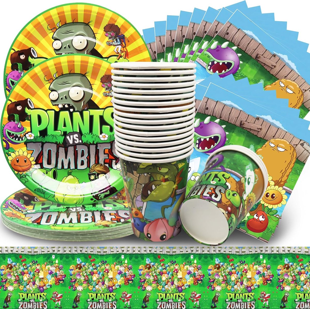 61 Stukken Verjaardagstafelversiering voor Kinderen – Zombies Verjaardagstafelgerei – Groene Spel Feest Tafelgerei – Borden – Bekers – Servetten – Tafelkleedjes