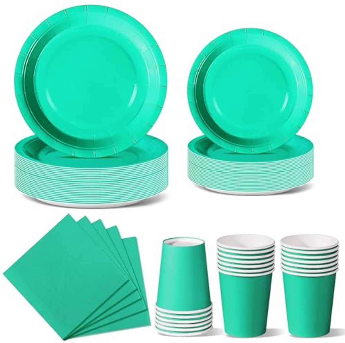 96-delig Feestservies voor 24 Gasten – Blauwe en Groene Wegwerpborden, Papieren Kopjes en Servetten voor Barbecue en Feesten