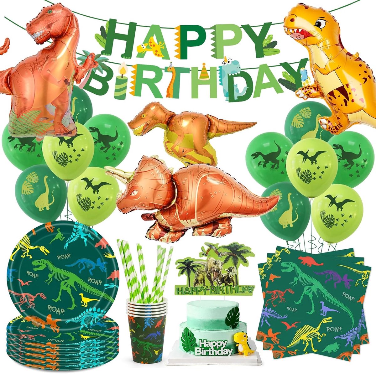 Themafeest Decoraties: De overvloed aan dinosaurusthema-elementen maakt deze set niet alleen ideaal voor verjaardagsfeestjes, maar ook voor carnaval of andere vieringen. Geef je feest een kleurrijke, leuke en stijlvolle uitstraling.