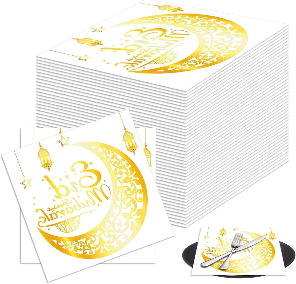 Allecta – Decoratieve Eid Mubarak Servetten voor Ramadan Feest – 80 stuks