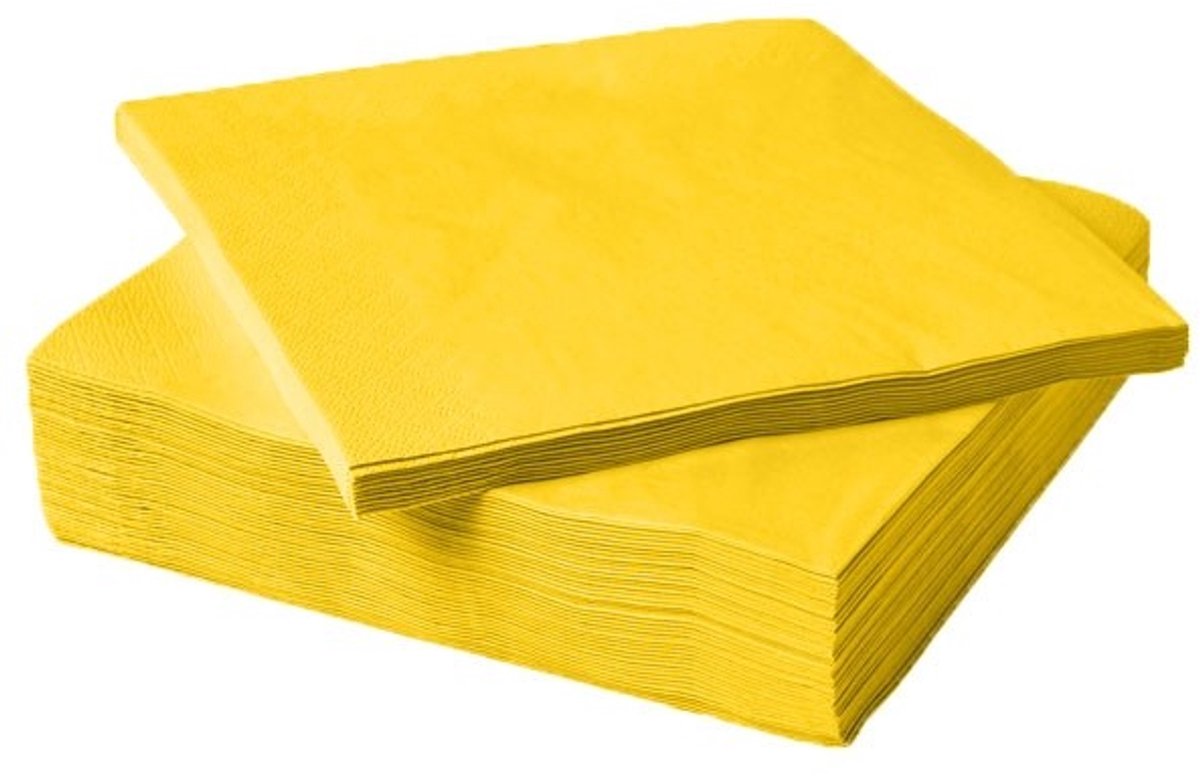 * Gemaakt van absorberend 2-laags papier voor optimale functionaliteit. * Ideaal formaat van 33×33 cm, geschikt voor elke gelegenheid. * Verkrijgbaar in een sprankelende gele kleur om je tafel compleet te maken. Geef je tafeldekking een zonnige touch met de gele servetten! Deze praktische servetten, verpakt per 100 stuks, combineren functionaliteit met stijl. Gemaakt van hoogwaardig 2-laags papier bieden ze uitstekende absorptie, ideaal voor zowel feestelijke gelegenheden als dagelijks gebruik. Met een handig formaat van 33×33 cm passen ze perfect bij elk servies. Voeg een vleugje vrolijkheid toe aan je tafel met deze stralende gele kleur en laat jouw gasten genieten van een stijlvolle en praktisch gedekte tafel!