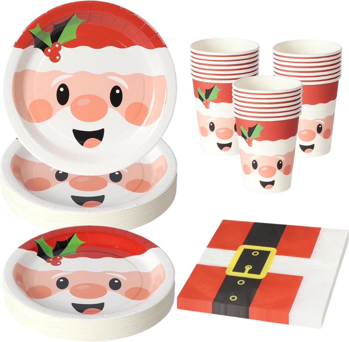 Goodivery® – Christmas Paper Plates – 64 stuks kerstpapieren borden en servetten set Kerstman dessertborden – papieren bekers – feest servetten servies voor tafeldecoraties – 16 personen