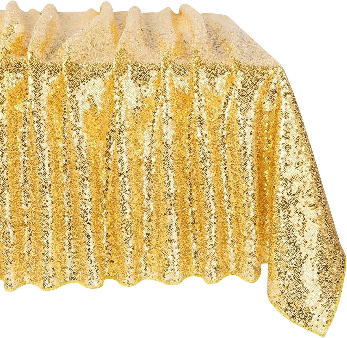 Geef uw feest een spectaculaire uitstraling met dit luxe gouden pailletten tafelkleed. Dit sprankelende rechthoekige tafelkleed (127 cm x 203 cm) is perfect voor het creëren van een magische sfeer op verjaardagen, bruiloften, jubilea of speciale themagebonden evenementen zoals Halloween. Het schitterende glittereffect vangt het licht op prachtige wijze en is ideaal als blikvanger voor uw cake- of desserttafel. Voor een langdurige glans, vermijd ruwe behandeling en volg de specifieke instructies voor vlekkenreiniging. Zorg voor een onvergetelijke achtergrond voor uw mooiste herinneringen.