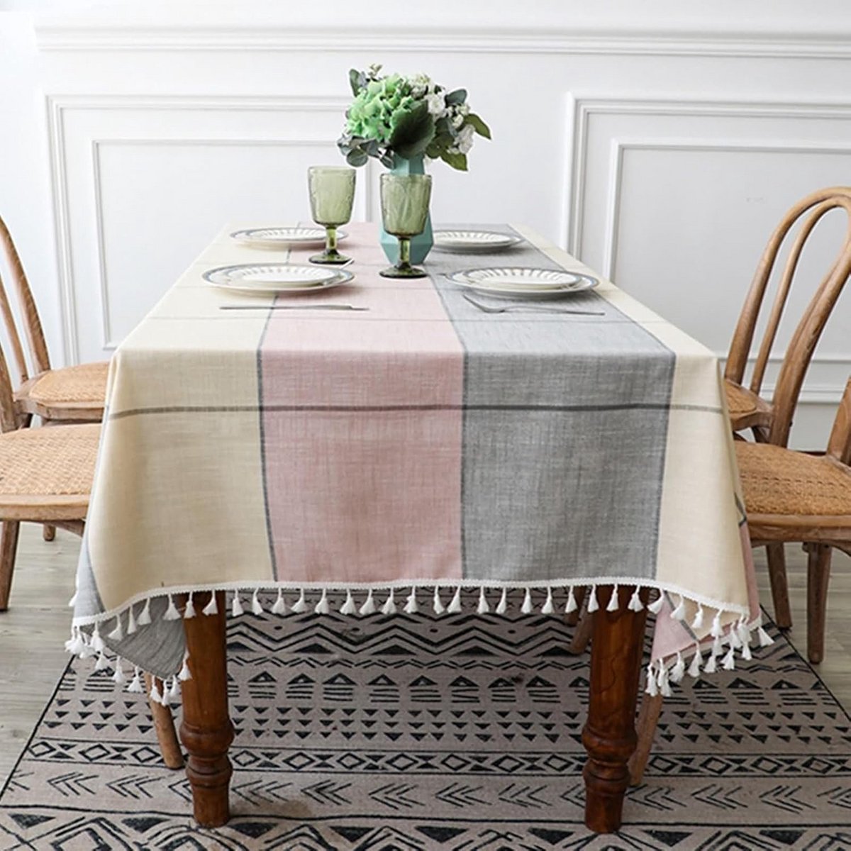 Rechthoekig Tafelkleed met Kwastjes voor Feest en Keuken in Roze