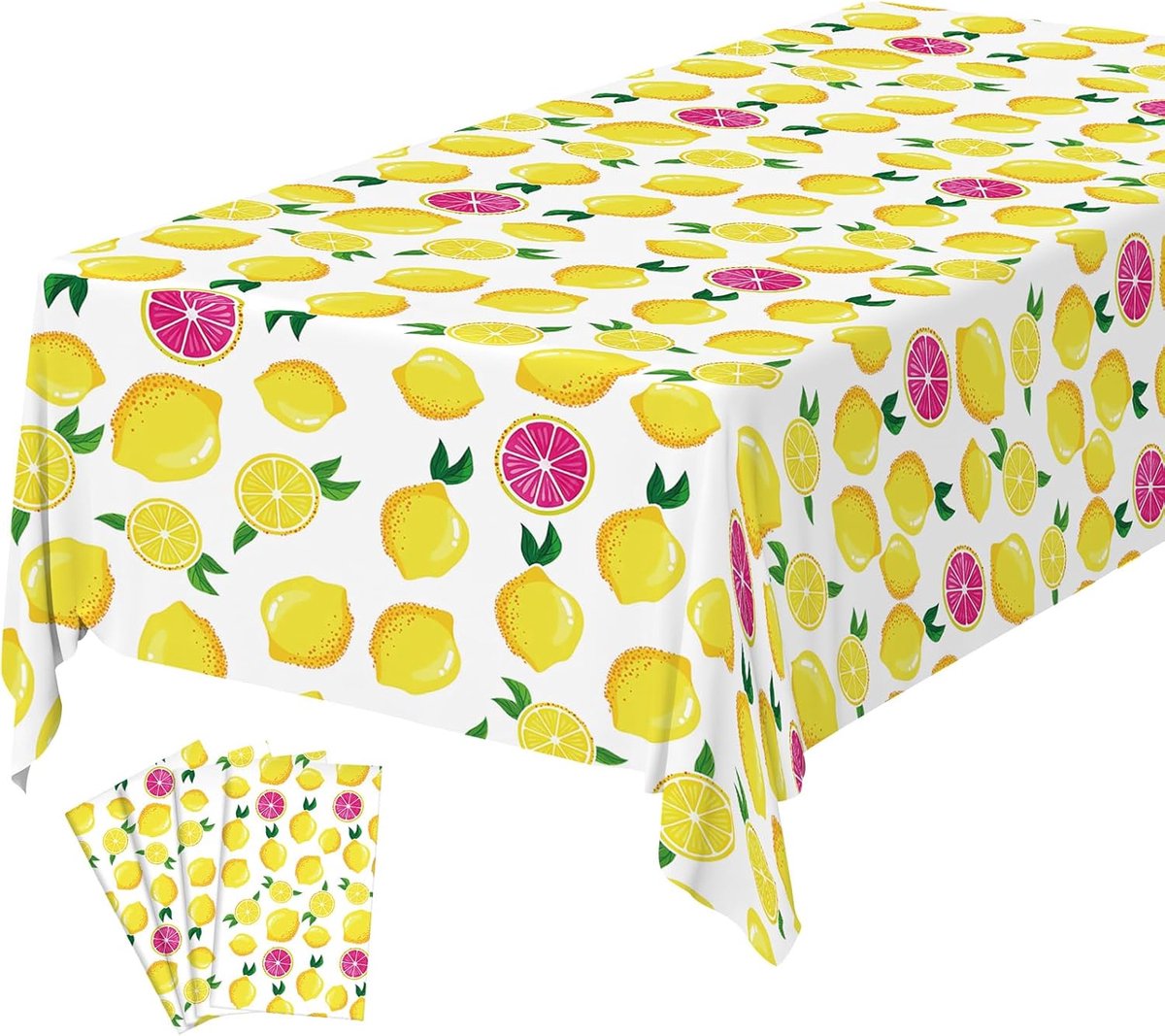 Tafelkleed voor kinderfeesten, 4 stuks, verse citroen, wegwerp tafelkleden, plastic tafelkleden voor kinderen, rechthoekig, 130 x 220 cm, decoratie voor feest, verjaardag