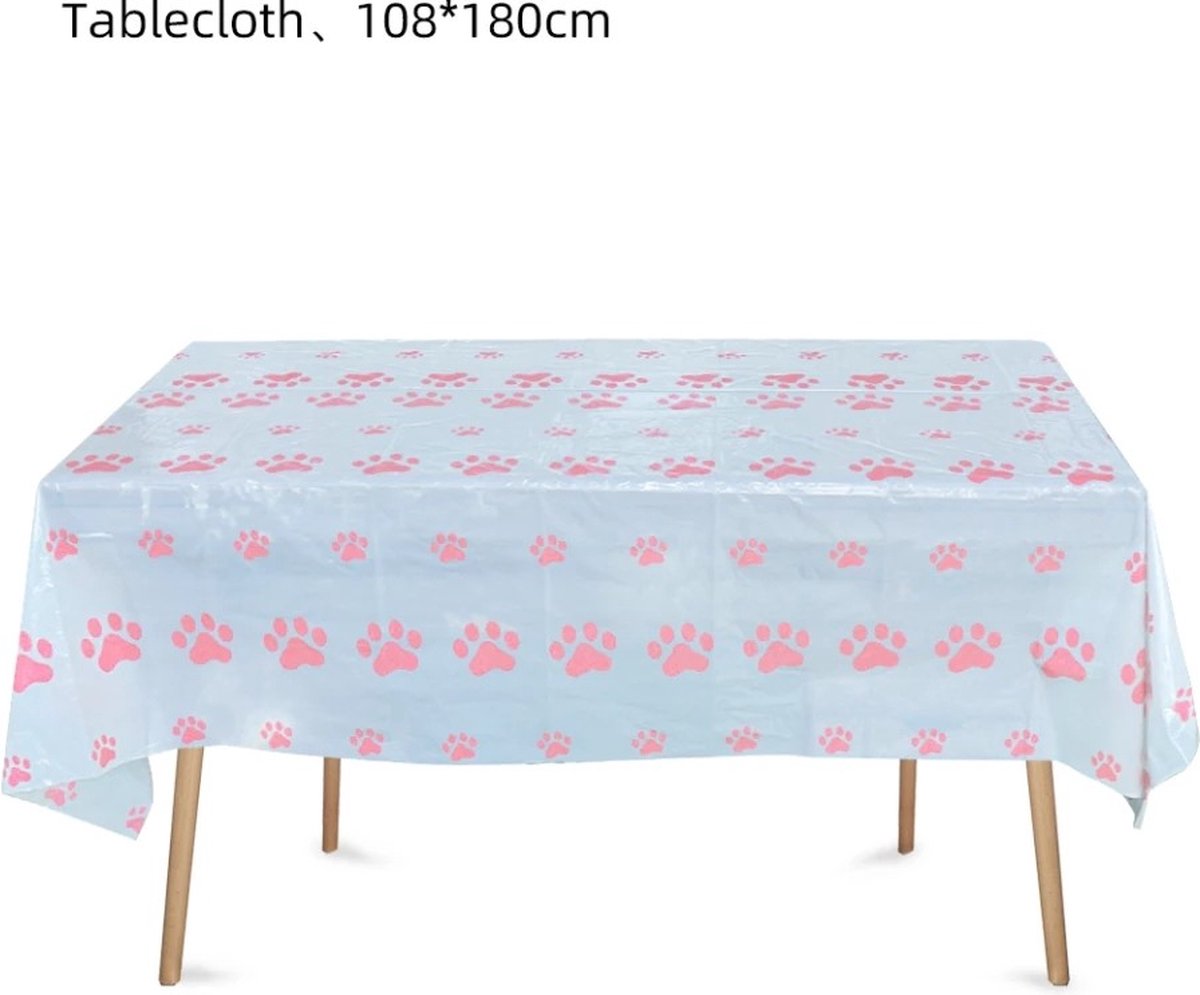 Tafelkleed wit met roze honden pootjes – hond – hondenpoot – honden feest – honden verjaardag – tafelkleed – huisdier