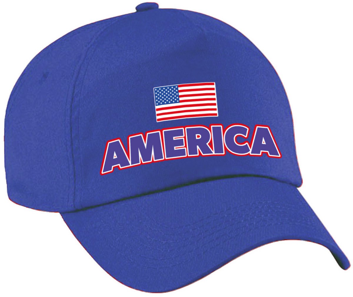 Bellatio Decorations Verkleed feest pet – blauw – Amerika – vlaggen/landen thema – zonneklep pet