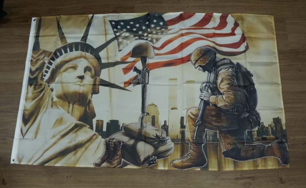 Gevelvlag Amerikaanse vlag, vrijheidsbeeld, soldaat – vlag vrijheidsbeeld – decoratie vlag vrijheidsbeeld van New York – Amerika vlaggen – Vlag Amerikaanse soldaag – deco vlag amerika – geschiedenis vlag van Amerika
