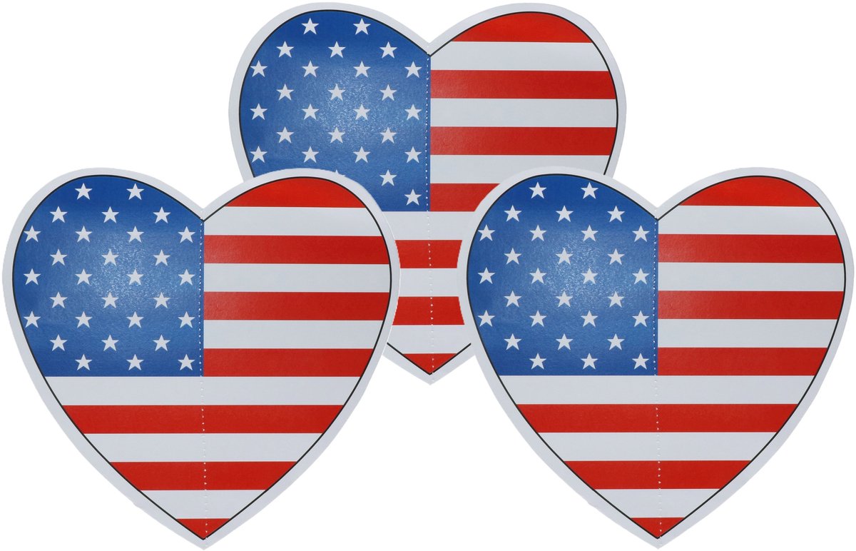 5x amerika/USA thema hangdecoratie hartje van 28 cm. Dit Amerika hangdecoratie hart heeft een print van de vlag van Amerika en is gemaakt van brandveilig materiaal. Het formaat van het Amerika decoratie hart is ongeveer 28 cm. Amerikaanse vlag WK landen versiering en feestartikelen.