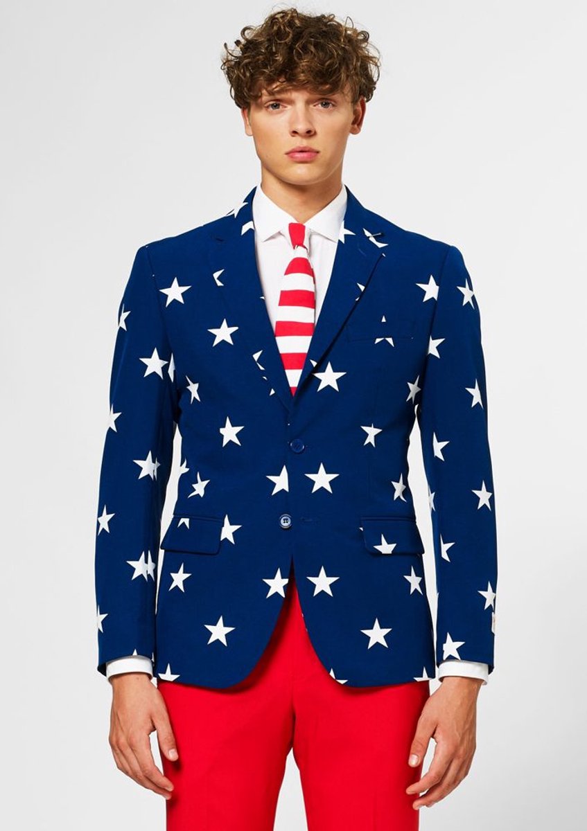 Jij kunt de verpersoonlijking van The American Dream zijn: succesvol, stijlvol, opvallend en trots. Stars and Stripes is een touchdown, een homerun en slam dunk op sportevenementen en een echte eyecatcher op feestjes. Go OppoSuits! Go USA!