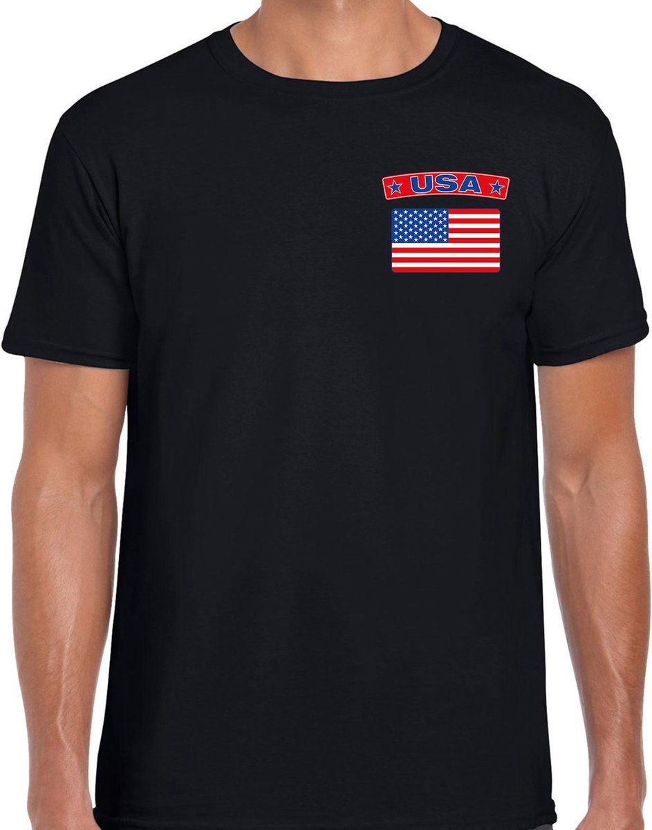 USA t-shirt met vlag zwart op borst voor heren – Amerika landen shirt – supporter kleding M