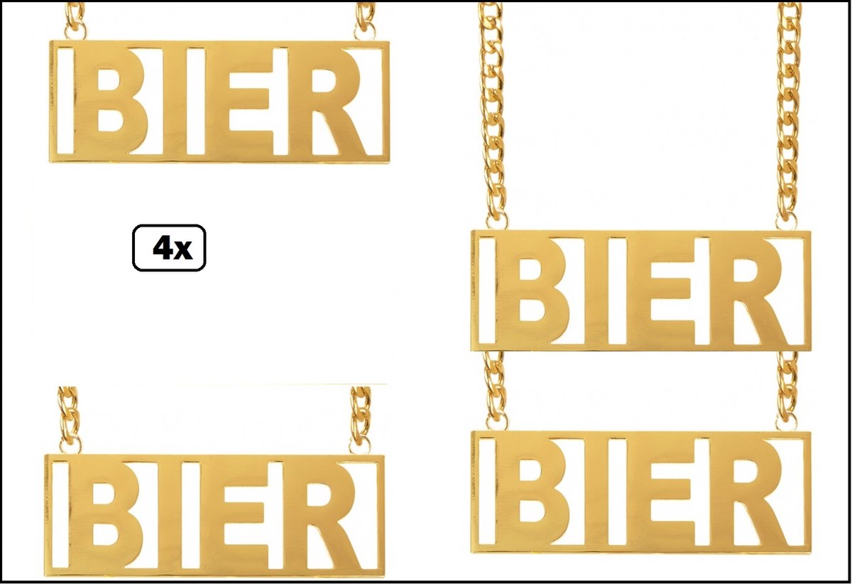 4x Bier ketting goud – Themaparty – bier feest apres ski carnaval Oktoberfest ketting festival gele rakker
