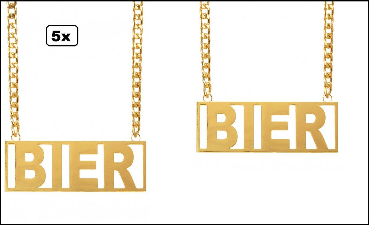 5x Bier ketting goud – bier feest apres ski carnaval Oktoberfest ketting festival gele rakker