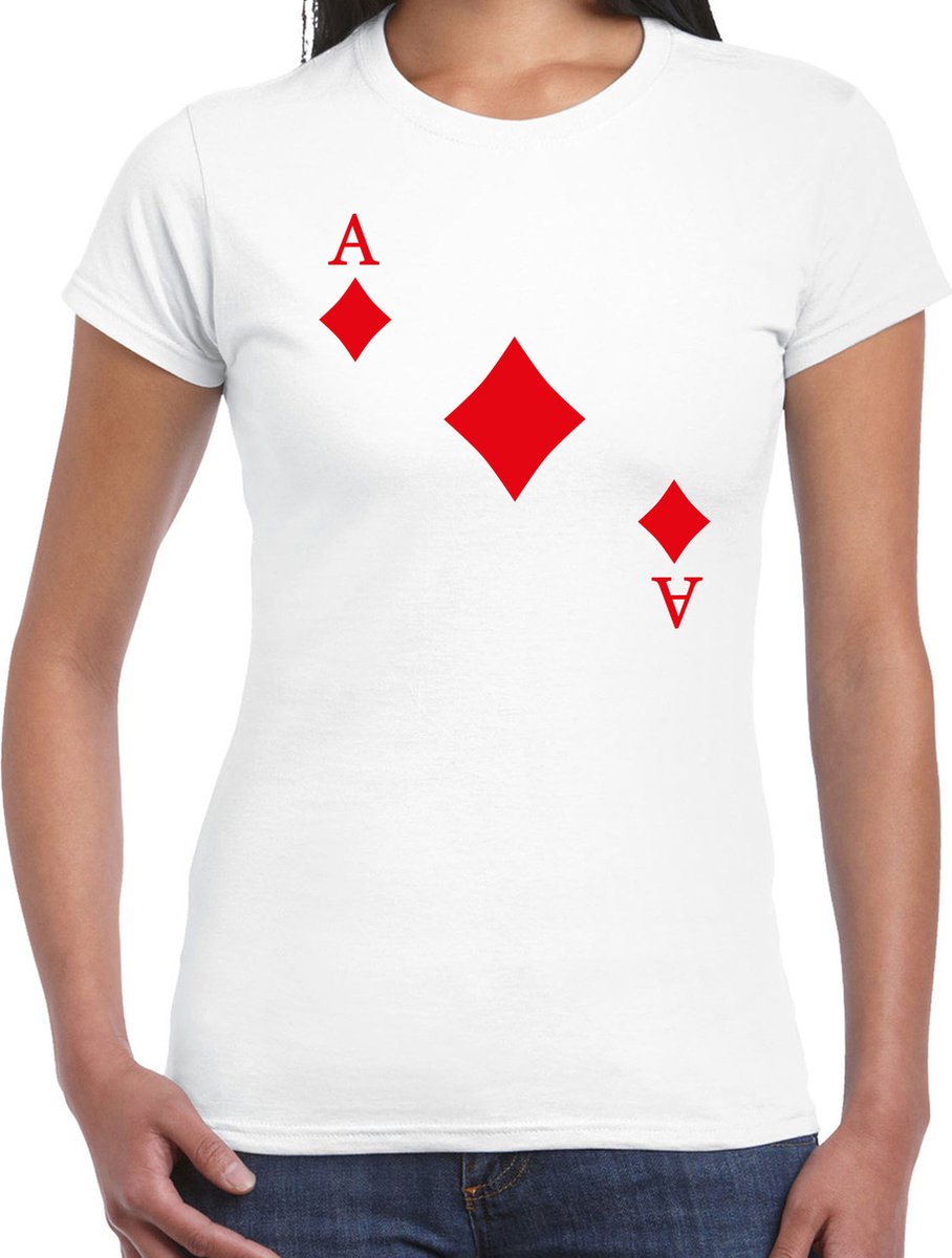 Bellatio Decorations casino thema verkleed t-shirt dames – ruiten aas – wit – poker t-shirt XXL