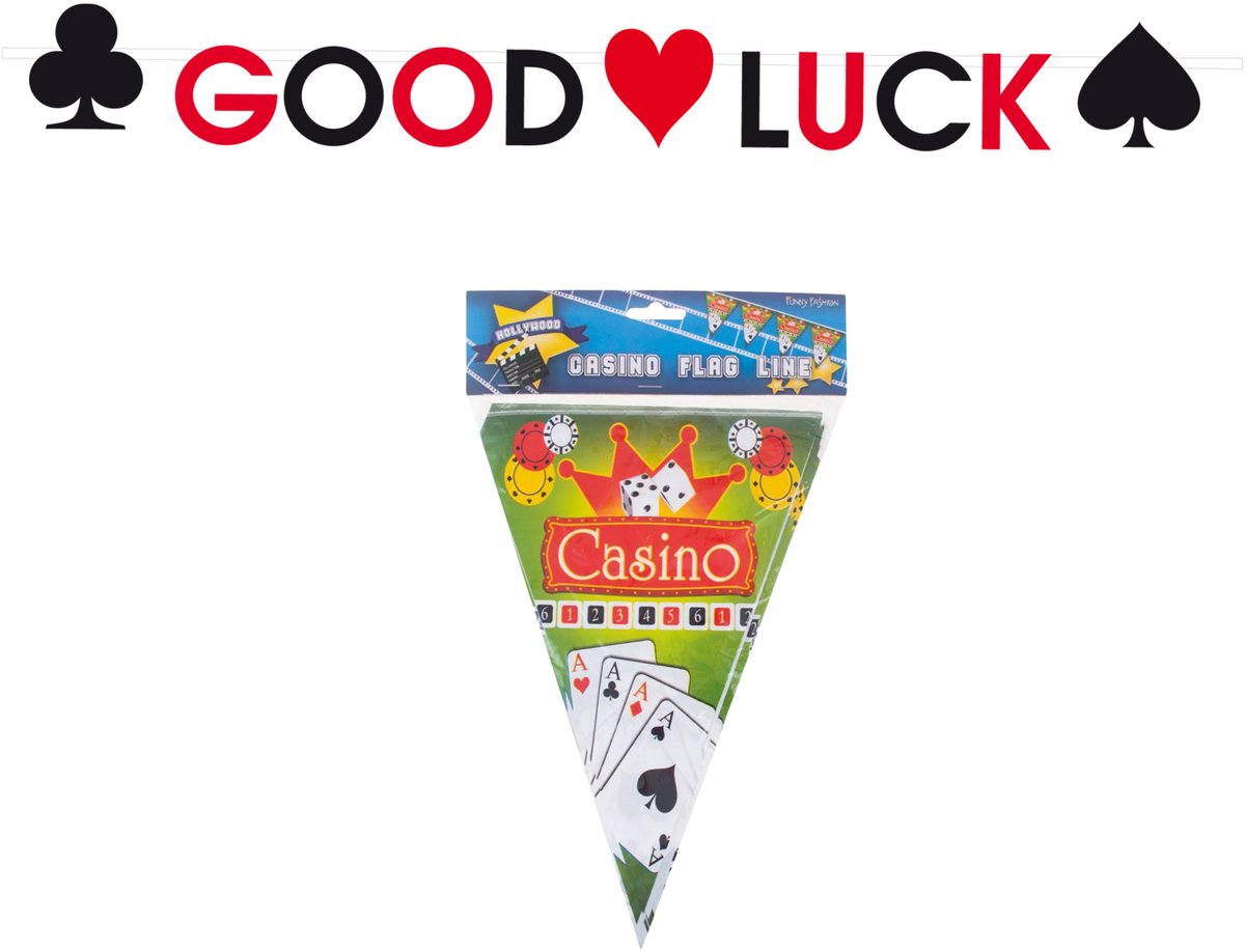 Dit artikel bestaat uit 1x Casino thema slinger – Good Luck – 180 cm – papier – brandvertragend – wenslijn