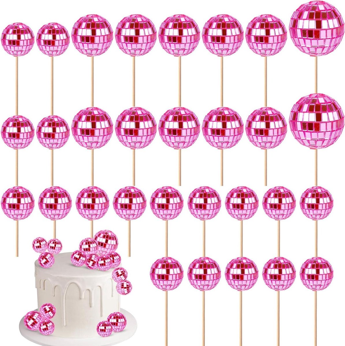 Allecto plus – 30 stuks Discobal Cupcake Toppers voor Disco Feest met Roze Mini Prikkers