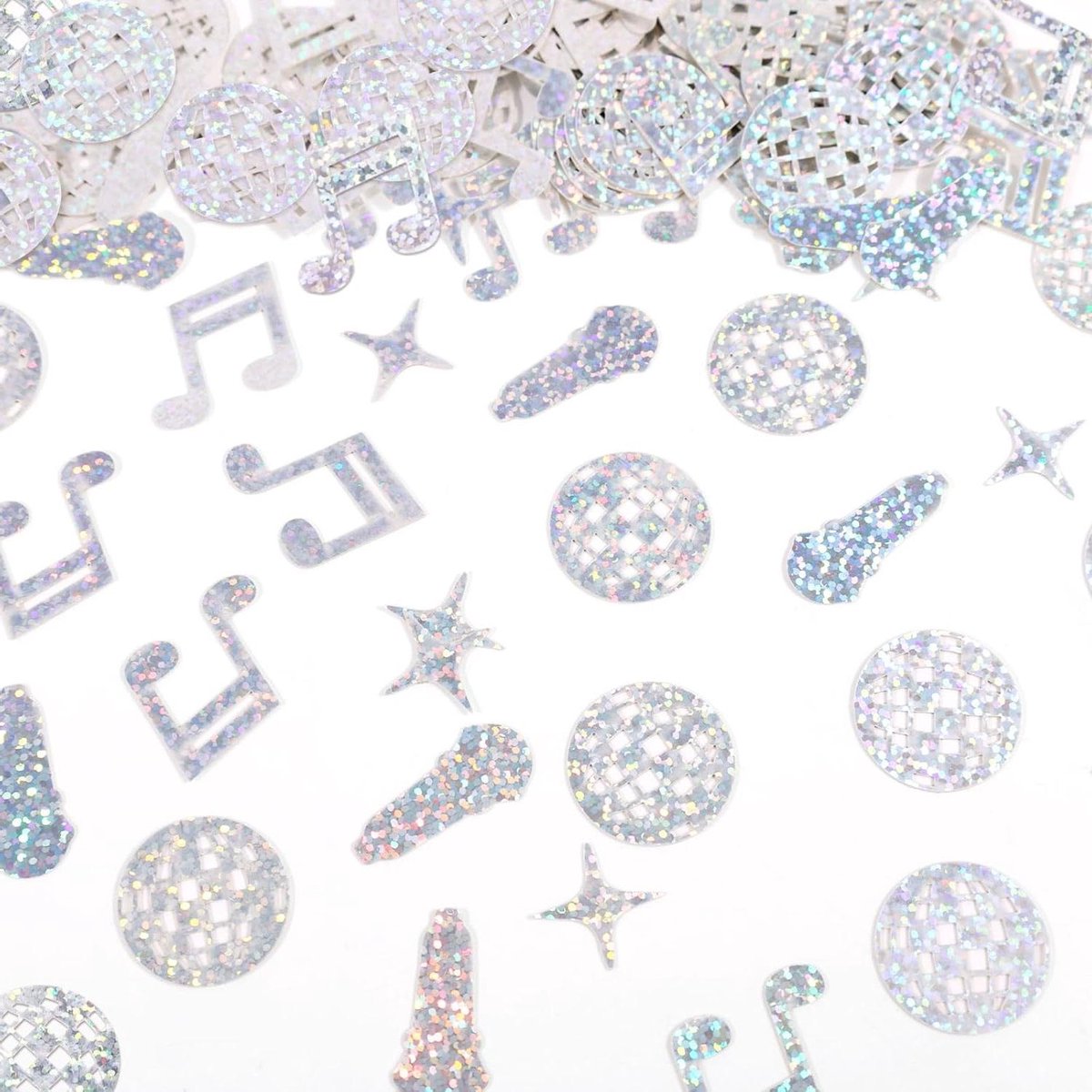 Allecto plus – Disco Feest Decoraties met 240 Stuks Glitter Tafelconfetti voor Discothema Verjaardagsfeestje met Discobal, Muzieknoot en Microfoon.