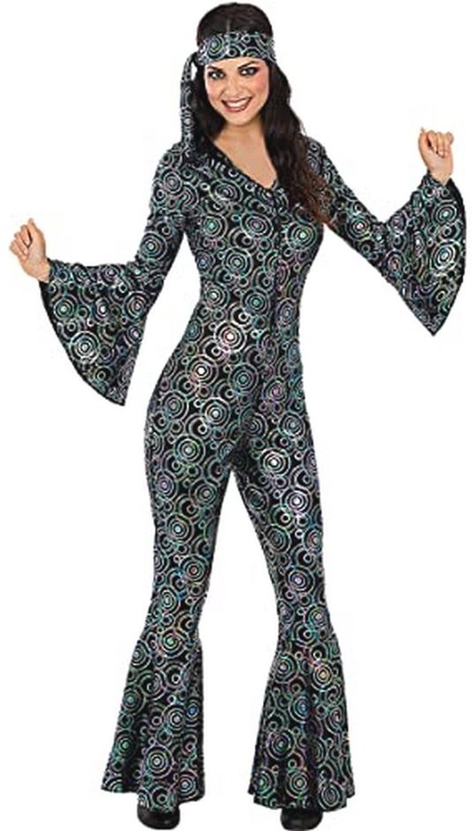 Dit schitterende jaren 70 disco kostuum voor vrouwen is perfect voor themafeesten, Halloween en carnaval. Met een glamoureuze gouden uitstraling laat je je stijl écht stralen. Dit kostuum is niet alleen leuk om te dragen, maar brengt ook een vleugje retro flair naar elke gelegenheid. Vergeet niet om het aan te vullen met leuke accessoires voor de complete disco-look!