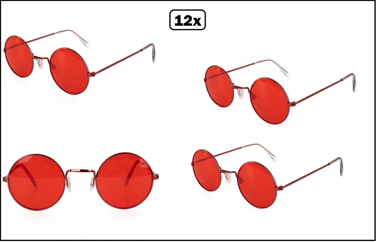 12x Bril flower power 70s rood – John lennon bril beatles rond – uilebril