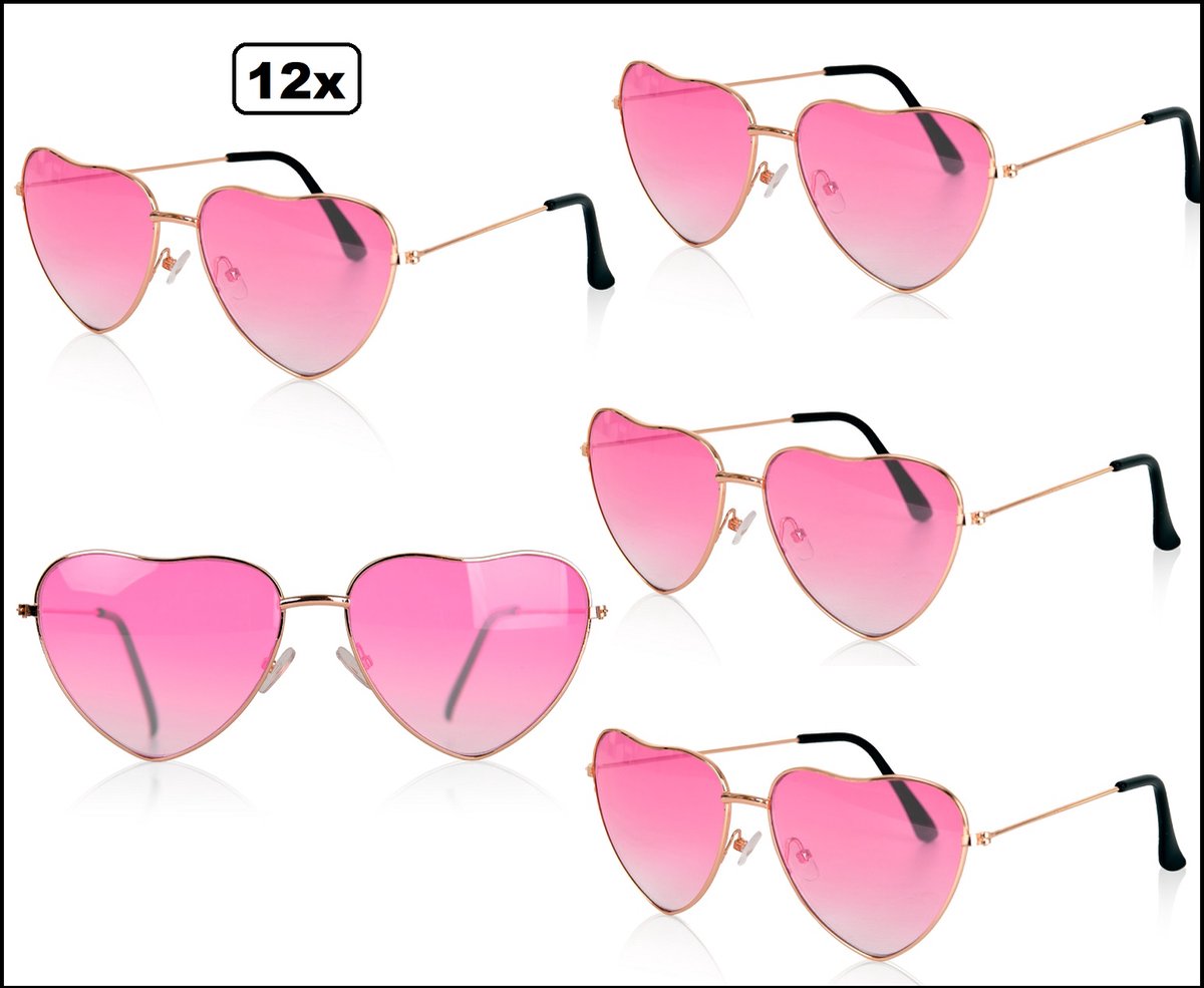 12x Bril Hartjes roze – metaal – Disco Thema feest party festival fun flower power