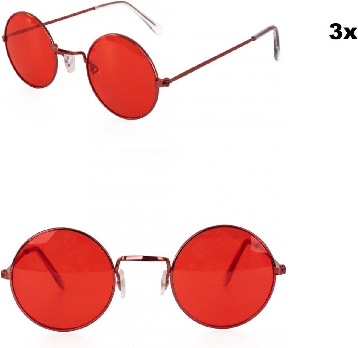 3x Bril flower power 70s rood – uilebril – John lennon bril beatles rond 70s and 80s disco peace flower power happy together toppers