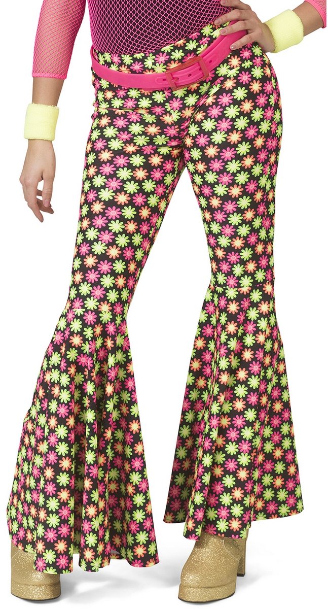 De Fluor Flower Power Goes Disco Broek voor vrouwen is een trendy en opvallende broek die perfect is voor elke feestelijke gelegenheid. Met zijn levendige kleuren en unieke design laat deze broek je stralen op elk themafeest.