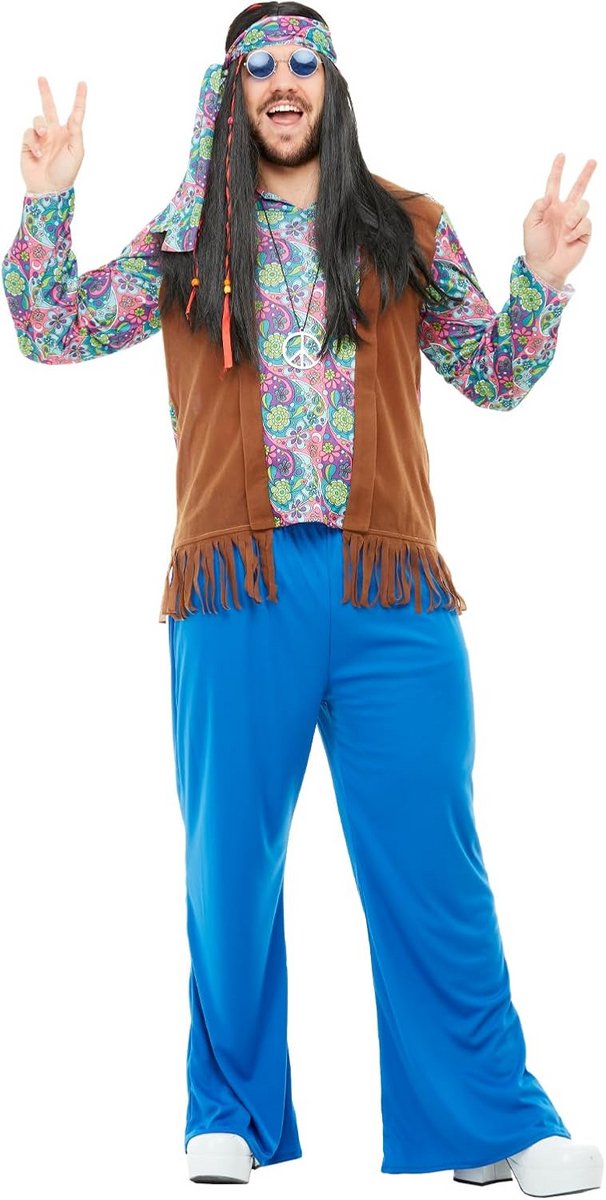 Dit Hippie kostuum voor mannen brengt je terug naar de jaren 60 met een geweldig flower power ontwerp. Perfect voor carnaval, feestjes of een vrijgezellenfeest. Het outfit is comfortabel en geschikt voor volwassen die de geest van de jaren 60 willen uitdragen. Maak indruk op je vrienden en straal energie uit op elk evenement met dit opvallende kostuum!