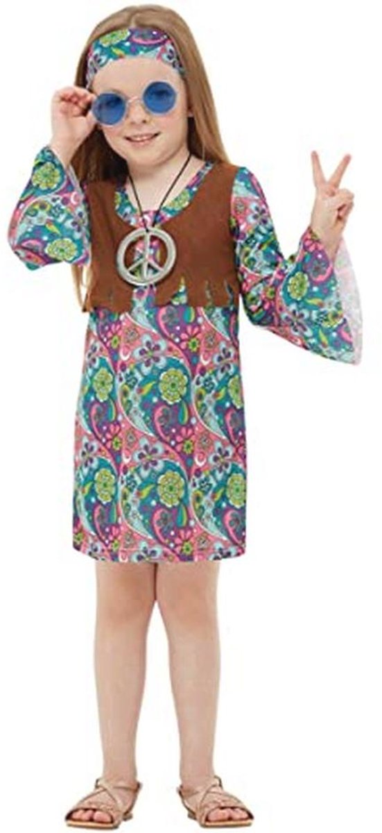Dit vrolijke hippie kostuum voor meisjes met een flower power thema is perfect voor carnavalsfeesten, Halloween en andere speciale gelegenheden. Gemaakt van comfortabele materialen, zorgt dit kostuum ervoor dat je dochter er stralend uitziet en zich vrij kan bewegen. Perfect gecombineerd met accessoires voor een complete look.