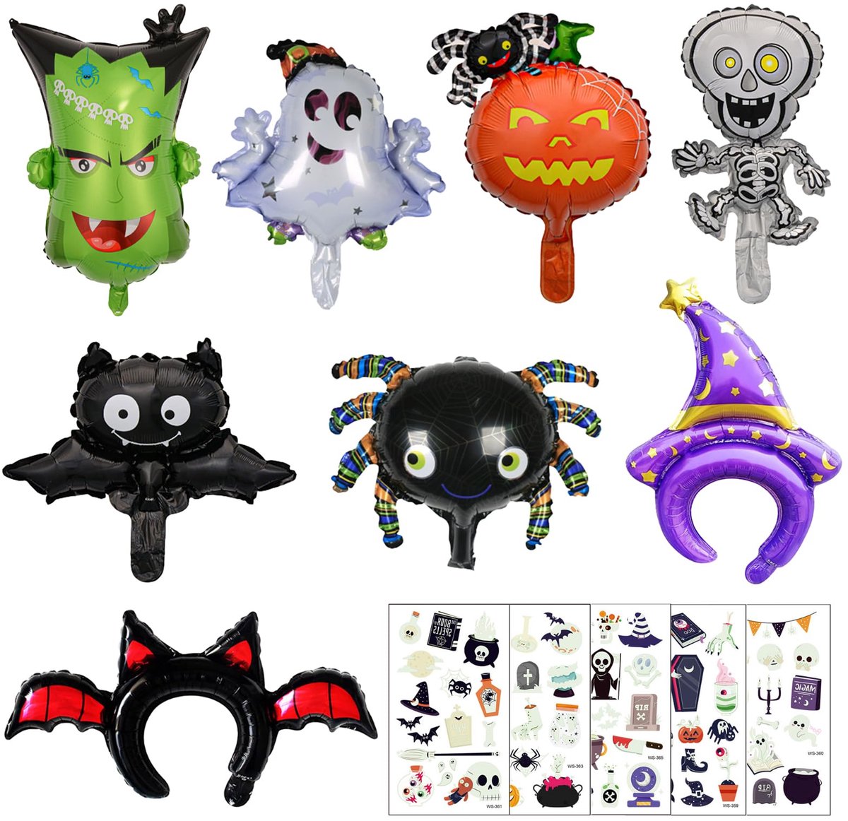 Halloween folie ballonnen, 13 stuks Halloween artikelen, 6 stuks mini Halloween folie ballonnen, Halloween feestdecoraties, Halloween feest ballonnen voor kinderen, Vleermuis ballonnen,
