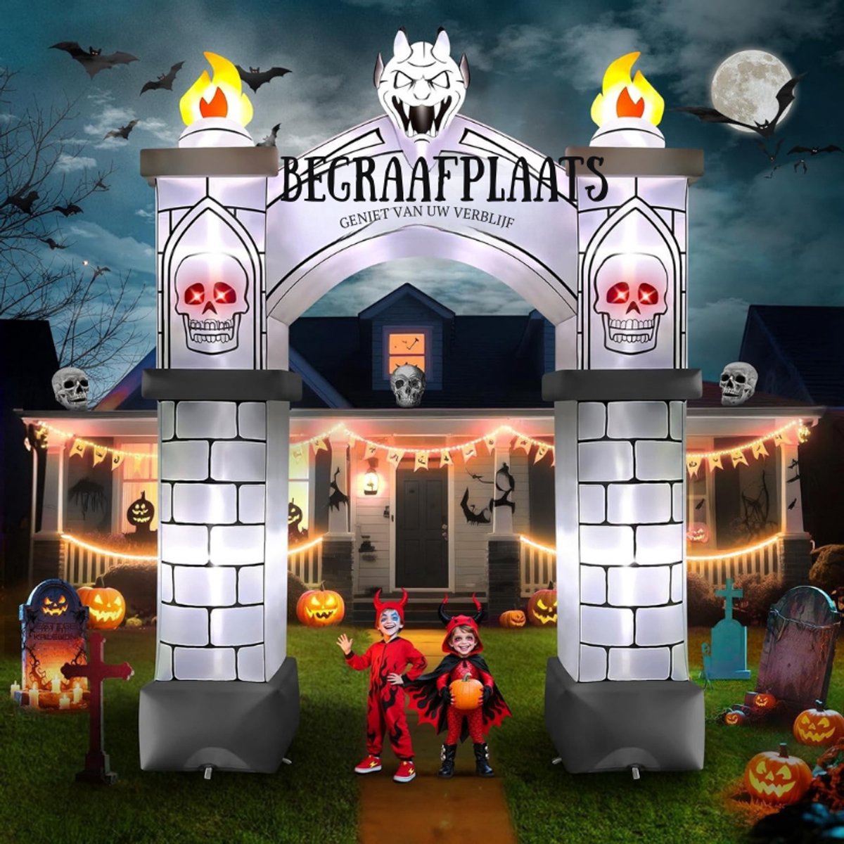 Een onvergetelijke Halloween sfeer Met deze opblaasbare boog wordt Halloween meer dan alleen een feest – het wordt een belevenis. Zodra gasten de poort binnenstappen, voelen ze meteen de spanning en sfeer die bij deze bijzondere dag hoort. Het is een decoratie die jong en oud zal verrassen en gegarandeerd voor gespreksonderwerpen zorgt.