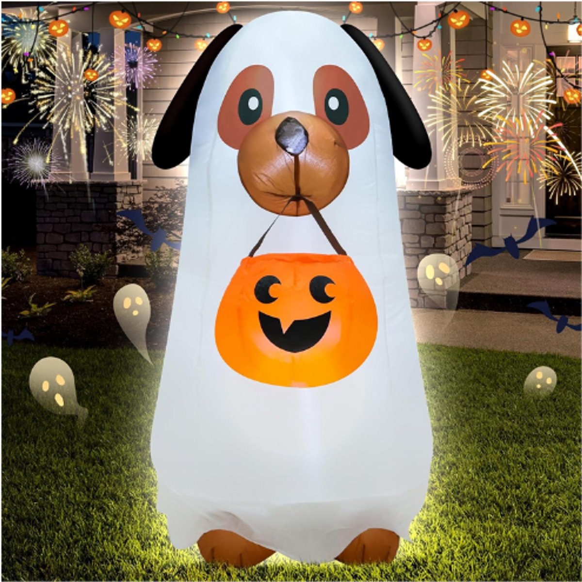 Halloween Opblaasbare Hond Met Pompoen 110cm Met LED Verlichting – Buiten Decoratie Voor Tuin En Feest – Waterdicht En Eenvoudig Op Te Blazen