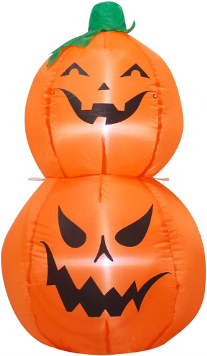 Halloween Opblaasbare Pompoen 90cm – Dubbele Gestapelde Pompoen Met LED Verlichting – Buiten Decoratie Halloween – Tuin – Feest – Waterdicht – Gemakkelijk Op Te Blazen