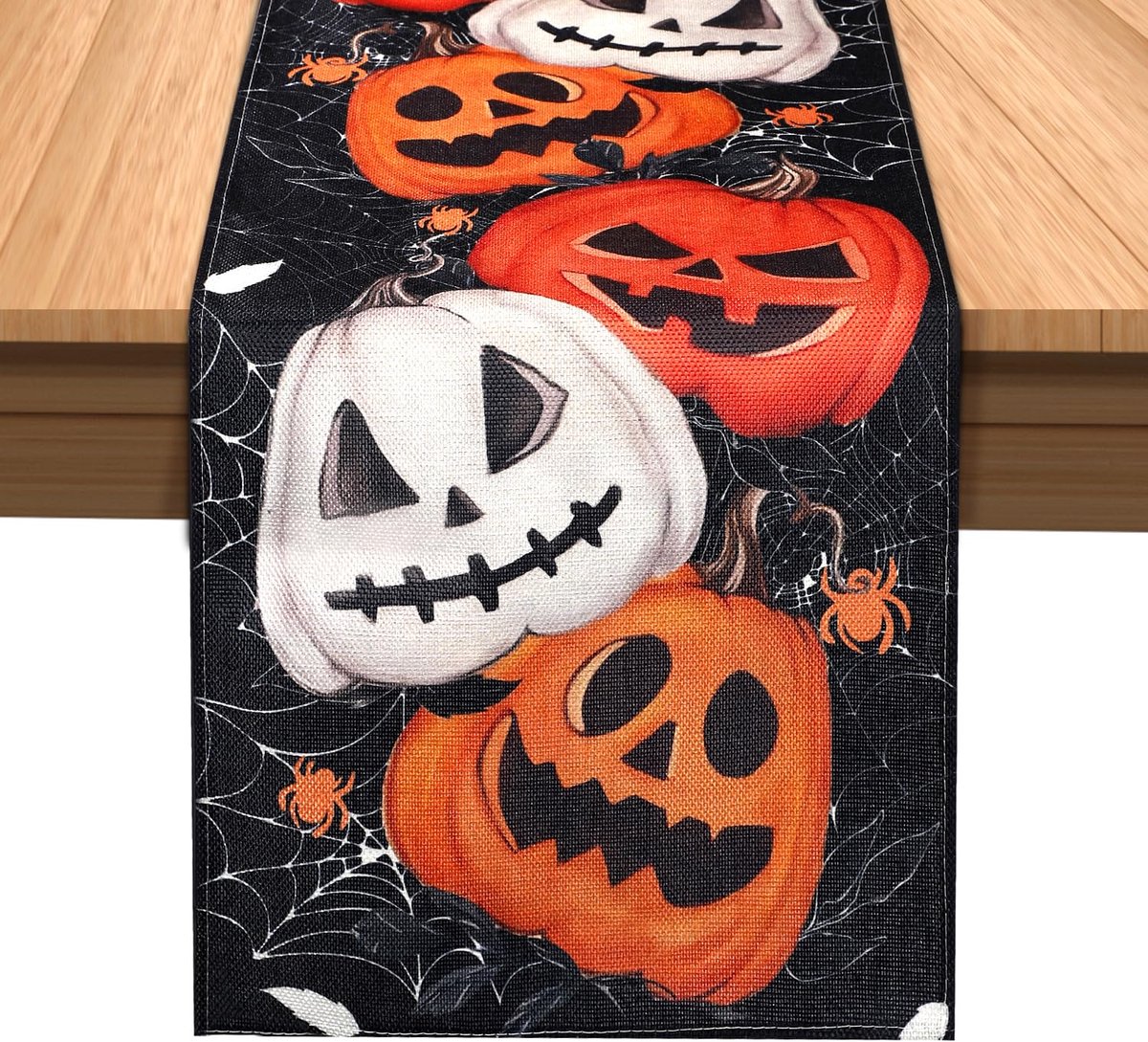 Included product: You will receive 1 piece Halloween table runner, with a measured of about 185x34cm, suitable size to decorate most dining tables, which can be folded to store easily. Reliable Material: Made of high-quality polyester material, our Halloween pumpkin table runner is calm to touch, not easy to break or shrink, reliable and durable, which can serve you for a long time. Cute design: Pumpkin and Spider Web in inspiration, we designed and made this funny table runner, ideal dining table decoration for Halloween party.The dye of it is specially processed, it can keep its bright colors for a long time. Wide application: our Halloween web table runner is a nice dining table ornament for Halloween party, perfectly match with the Halloween atmosphere.It can protect your table top from burns, scratches. Good gift: The Halloween table decoration is a good gift for your friend or family members, creating a funny Halloween atmosphere and protecting their dining table. They will not refuse such a delicate and practical gift.