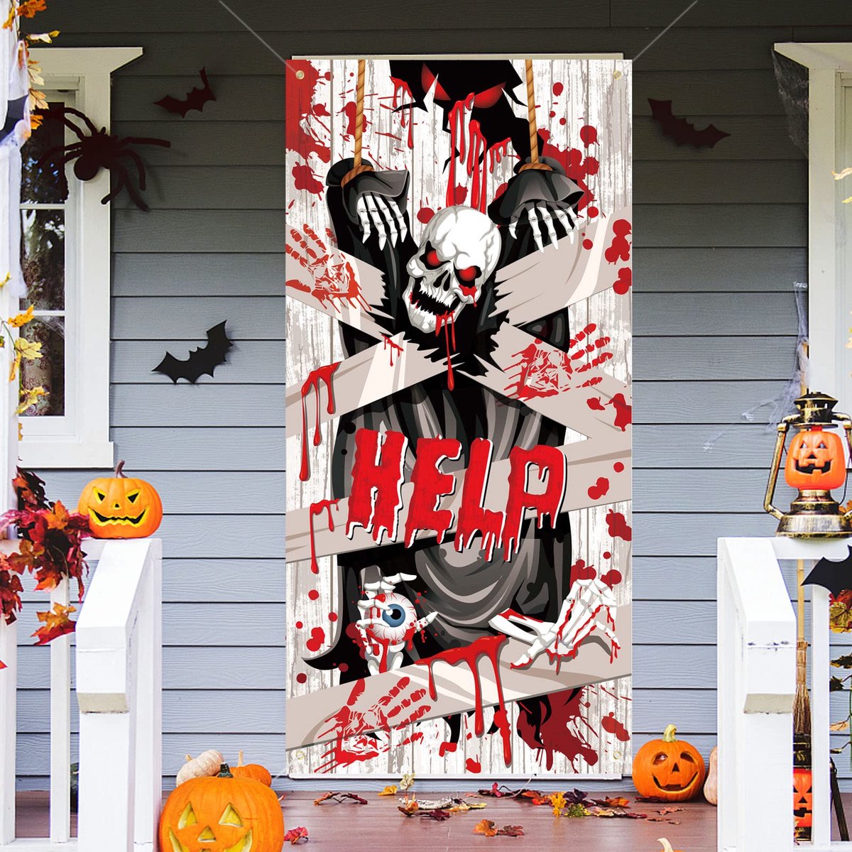 Hangende geest skelet banner voor enge Halloween decoratie, gescheiden bloed handafdruk Magere Hein Deurhoes, Horror Spookhuis Props