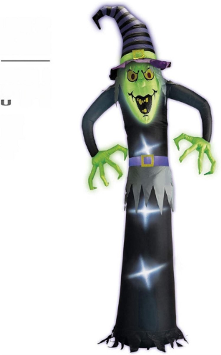 Perfect voor elk Halloween feest Of je nu een groots Halloween feest organiseert, een spannende decoratie voor trick-or-treaters zoekt of gewoon je tuin wilt omtoveren in een griezelige setting, deze opblaasbare heks is de ideale keuze. Met haar angstaanjagende uitstraling, verlichting en imposante hoogte van 244 cm trekt ze gegarandeerd de aandacht van voorbijgangers en gasten.
